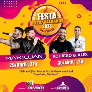 Ouvidor tem um povo ordeiro, receptivo, amigo e acima de tudo trabalhador, por isso a prefeitura municipal de Ouvidor convida toda população para celebrarmos juntos.Sorteio de vários brindes e shows, dia 29 Max e Luan dia 30 Rodrigo e Alex.