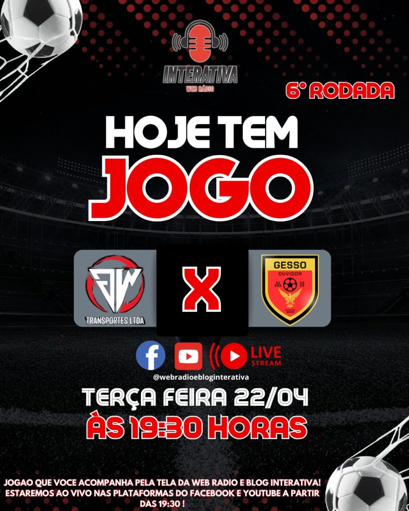 HOJE TEM A ABERTURA DA 6° RODADA DO CAMPEONATO OUVIDORENSE 2025 JOGO ENTRE GW TRANSPORTES X GESSO OUVIDOR COM TRANSMISSÃO AO VIVO A PARTIR DAS 19:30 22 de abril de 2025 Off Por Blog Rádio Interativa