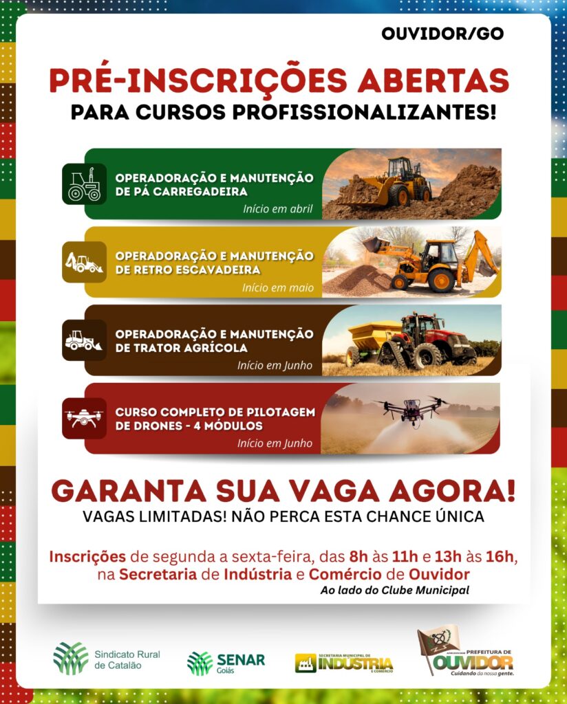 Pré-inscrições Abertas cursos em Ouvidor Goiás!